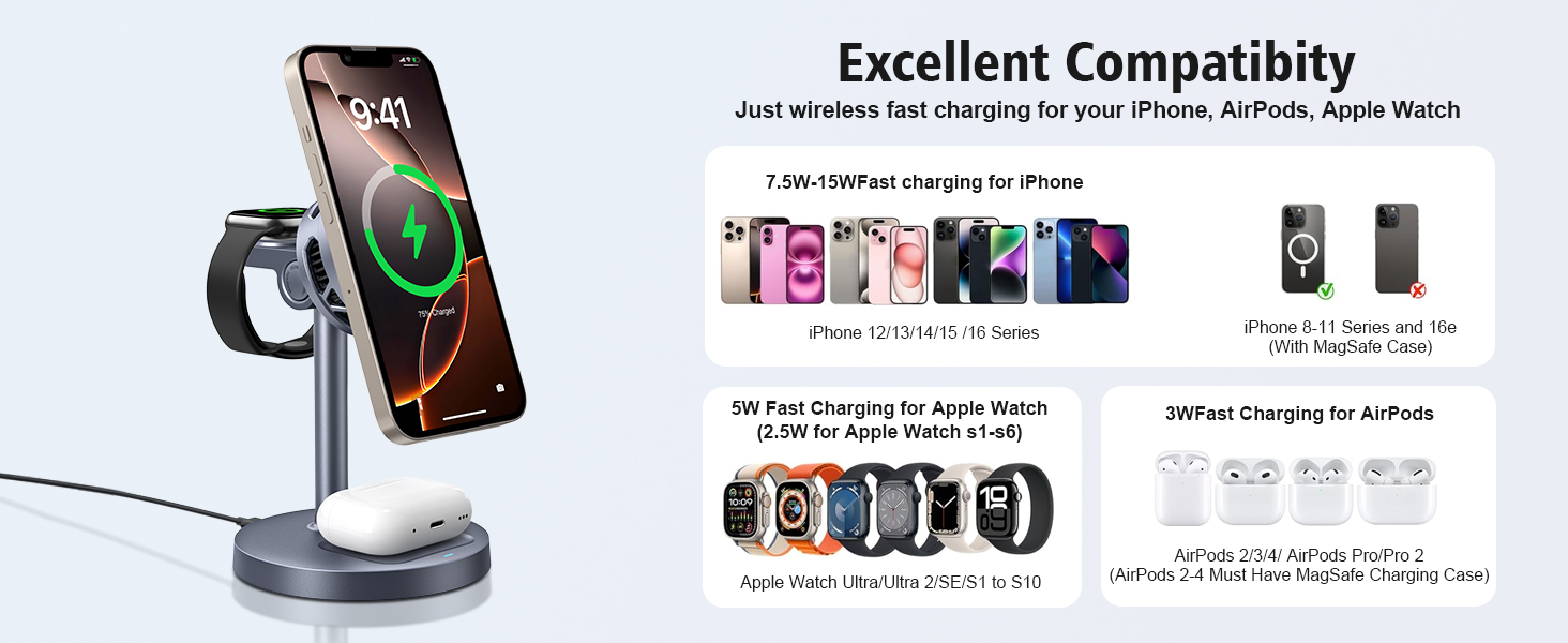 Qi2.2 certified – Unleashing Next-Gen Powerqi2.2 25W 3-in-1 Magnetic (MagSafe)wireless charging