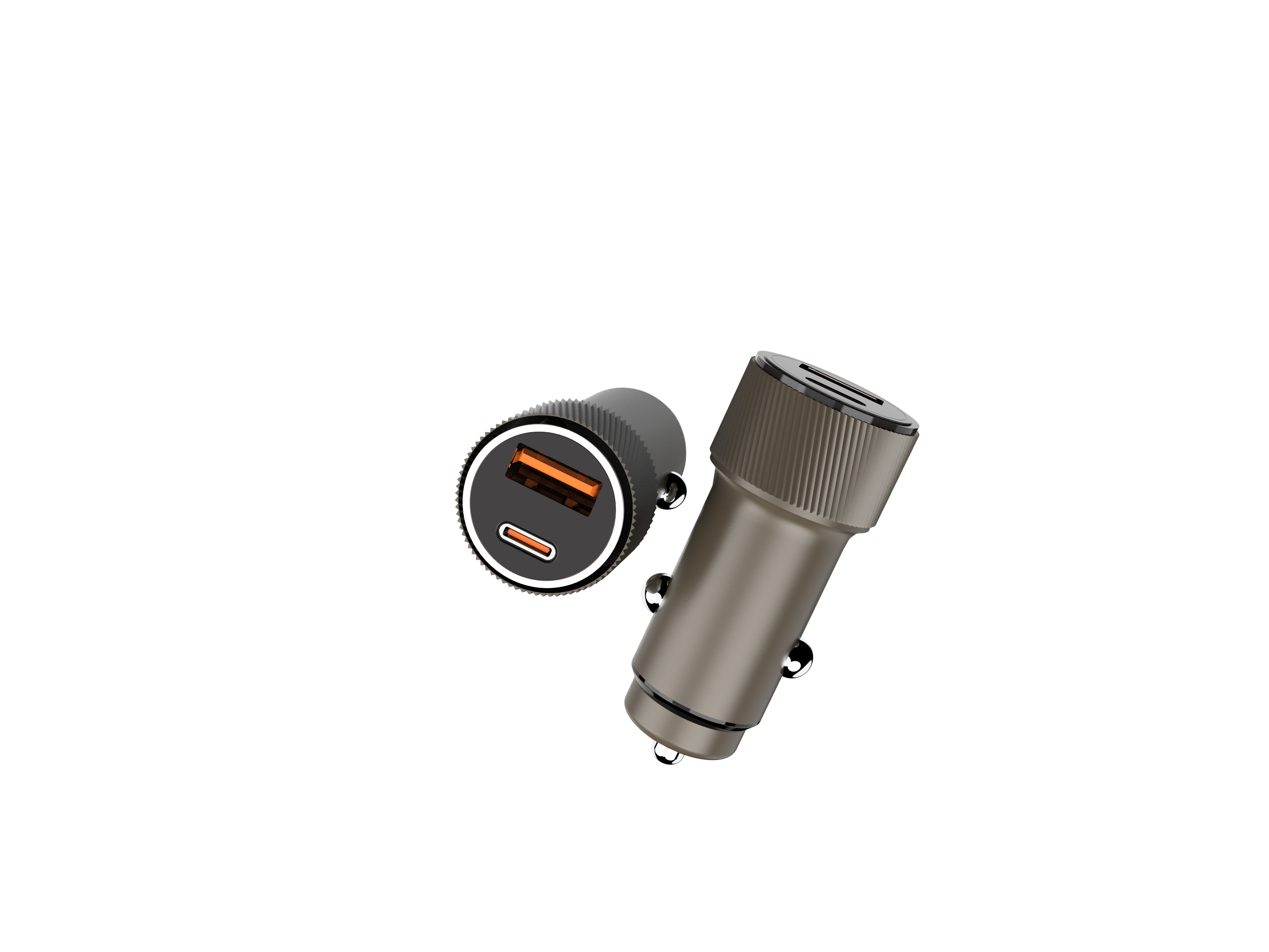 15915401682 48W Dual-port Fast Charging Car Charger PD3.0 USB-C+QC3.0 USB-A Fast Charging Input: DC 12V -24V Output Total Power: 48W Max Max Single Port Power USB-C: 5V/3A, 9V/3A, 12V/2.5A 30W Max PPS: 3.3-5.9V/3A ,PPS: 3.3-11V/2.75A USB-A: 5V/3A, 9V/2A, 12V/1.5A 18W Max Dual-Port Fast Charge Power USB-C+USB-A: 30W+18W Max Fast Charging Protocols USB PD3.0 30W, PPS, QC4+ QC3.0/2.0, FCP, SCP, AFC, Apple 2.4A, DCP | DC Plug: Cigarette Lighter Plug Metallic aluminum alloy shell Size: 25.4(W)x62.5(H) mm Frosted Titanium Metal Color: Café Gold color Blue-Gray color Black color Product Standard: CE / ROHS / FCC |