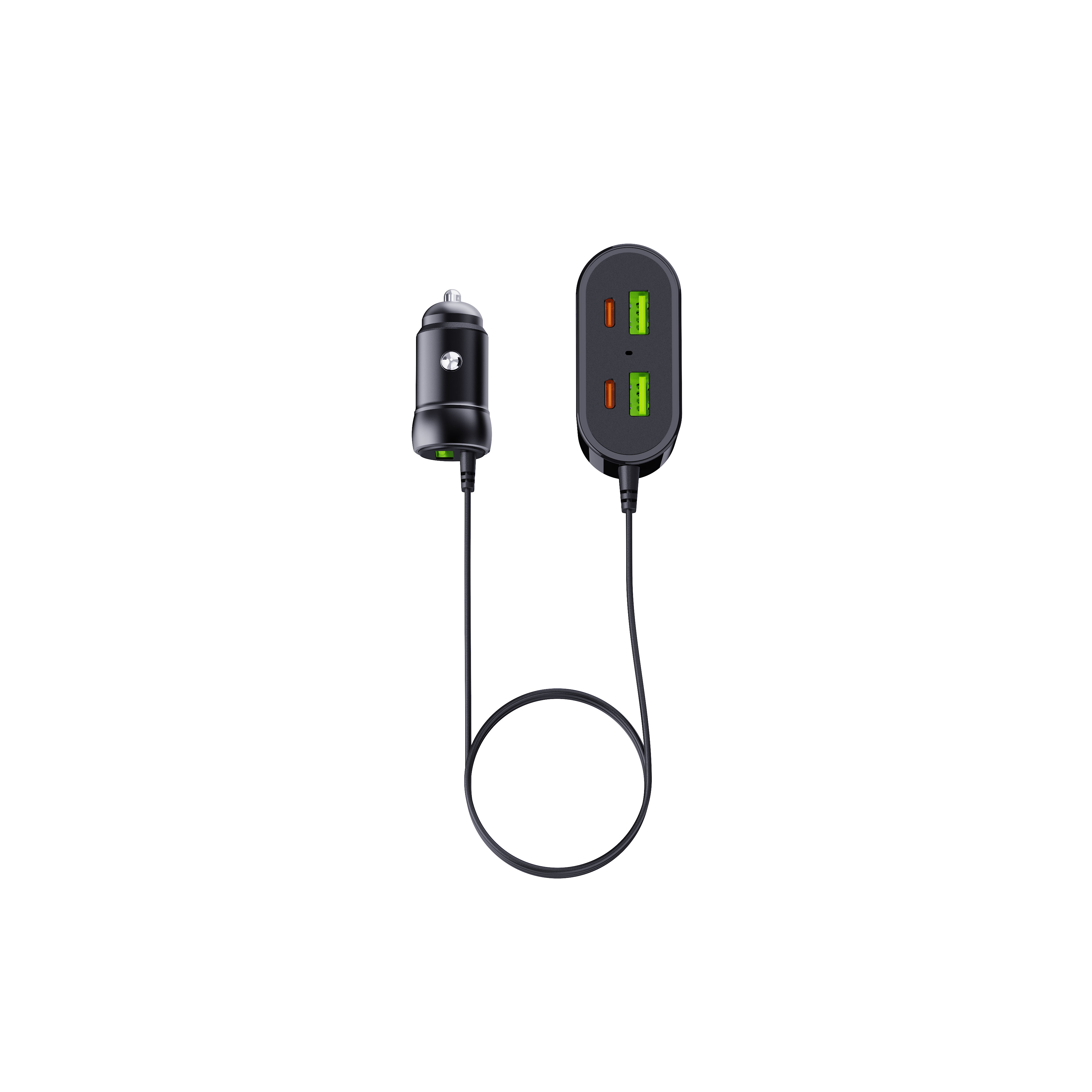 15915401682 78W 5-in-1 Multi-port car fast charger QC3.0 USB-A Fast Charging PD3.0 USB-C1+A1 & PD3.0 USB-C2+A2 Input: DC 12V -24V Output Total Power: 78W Max Max Single Port Power USB-C1: 5V/3A, 9V/3A, 12V/2.5A 30W Max PPS: 3.3-5.9V/3A ,PPS: 3.3-11V/2.75A USB-A1: 5V/3A, 9V/2A, 12V/1.5A 18W Max USB-C2: 5V/3A, 9V/3A, 12V/2.5A 30W Max PPS: 3.3-5.9V/3A ,PPS: 3.3-11V/2.75A USB-A2: 5V/3A, 9V/2A, 12V/1.5A 18W Max USB-A: 5V/3A, 9V/2A, 12V/1.5A 18W Max Dual-Port Fast Charge Power USB-C1+C2+USB-A: 30W+30W+18W 78W Max USB-C1+A2+USB-A:30W+18W+18W 66W Max USB-C2+A1+USB-A:30W+18W+18W 66W Max USB-C1+A1+USB-A:15W+18W Max USB-C2+A2+USB-A:15W+18W Max Fast Charging Protocols USB PD3.0 30W, PPS, QC4+ QC3.0/2.0, FCP, SCP, AFC, Apple 2.4A, DCP | 78W Max Total Power: Fast Charging Without Compromise The top combination (USB-C1+C2+USB-A) delivers 78W (30W+30W+18W). Even with 3 devices charging, each gets enough power: USB-C ports charge phones/tablets quickly (e.g., a 4000mAh phone can get 60% charge in 30 mins), while USB-A handles low-power devices. No "slow charging because of power split" anymore. 90cm Cord & Rear Dock: Solve Rear-Seat Charging Trouble With a 90cm power cord, it easily reaches the rear USB charging dock. No more rear passengers leaning forward or passing devices to the front—kids can charge tablets, elders can charge phones comfortably in the back, fixing the "no power in rear seat" issue common in most cars. Back Clip Dock: Stable Even on Bumpy Roads The charging dock has a back clip that clamps tightly to the seat pocket. It won’t slide or rattle when the car is moving on rough roads, avoiding messy wires or the dock falling off. Keeps the car interior tidy, especially handy during family road trips with many devices. Dual 30W PD3.0 USB-C Ports: Wide Compatibility USB-C1 and USB-C2 both support 30W Max with PD3.0 and PPS (3.3-5.9V/3A, 3.3-11V/2.75A). They work smoothly with iPhones (via PD), Android phones like Samsung (via PPS), and small tablets. No need to check device compatibility—just plug and fast charge. 18W QC3.0 USB-A Ports: For Old and New Devices USB-A1, USB-A2, and the main USB-A all support 18W Max with QC3.0/2.0, FCP, SCP, etc. Charge older Android phones, Bluetooth earbuds, or car cameras efficiently. No need to keep old chargers just for in-car use. Flexible Power Combinations: Fit All Scenarios It adapts to different needs: 78W (C1+C2+USB-A) for maximum devices, 66W (C1+A2+USB-A or C2+A1+USB-A) for mixed USB-C/USB-A devices, or 33W (C1+A1 or C2+A2+USB-A) for basic use. Whether it’s a family trip with many devices or daily commute with one phone, it meets the need. |