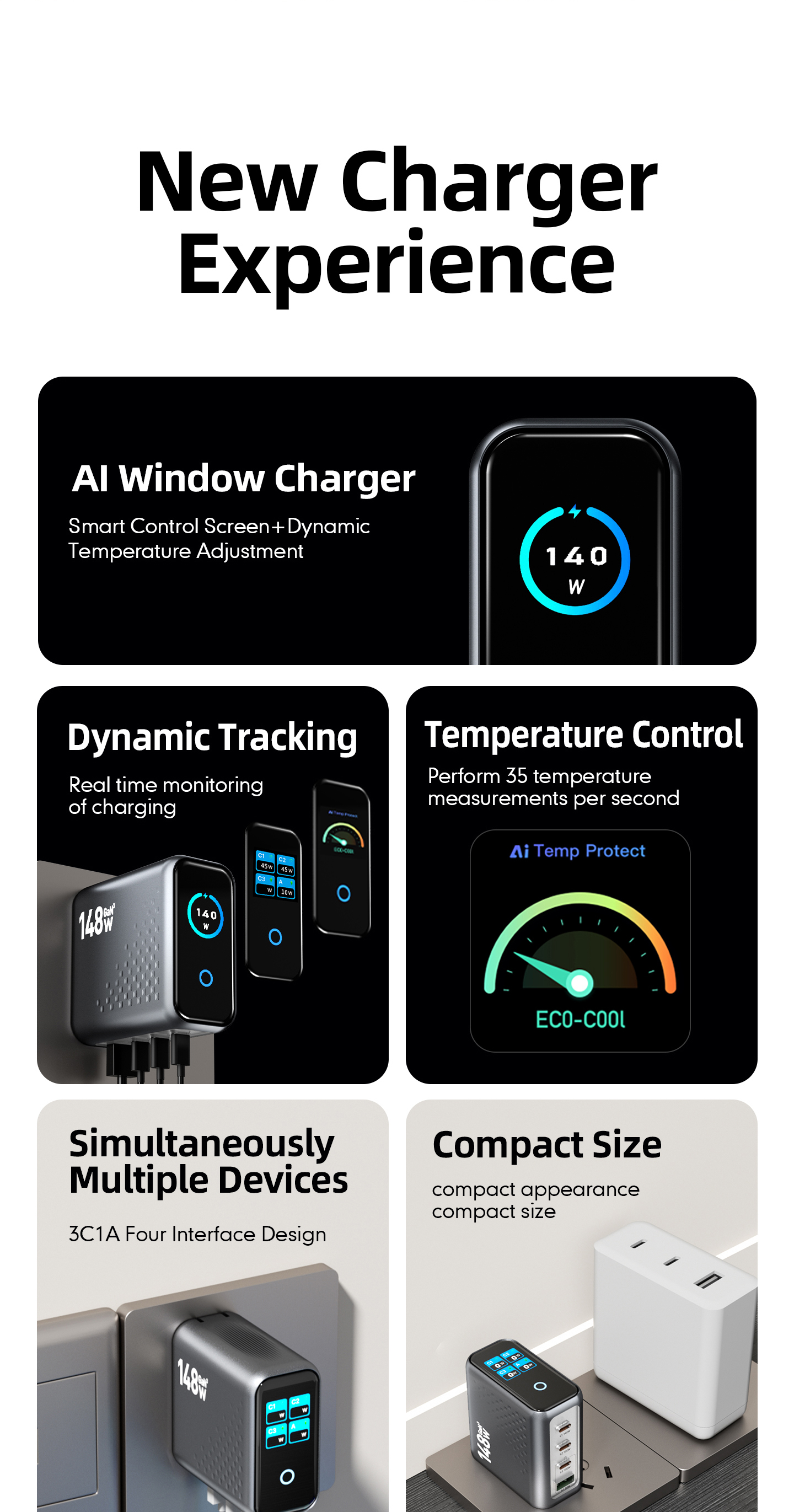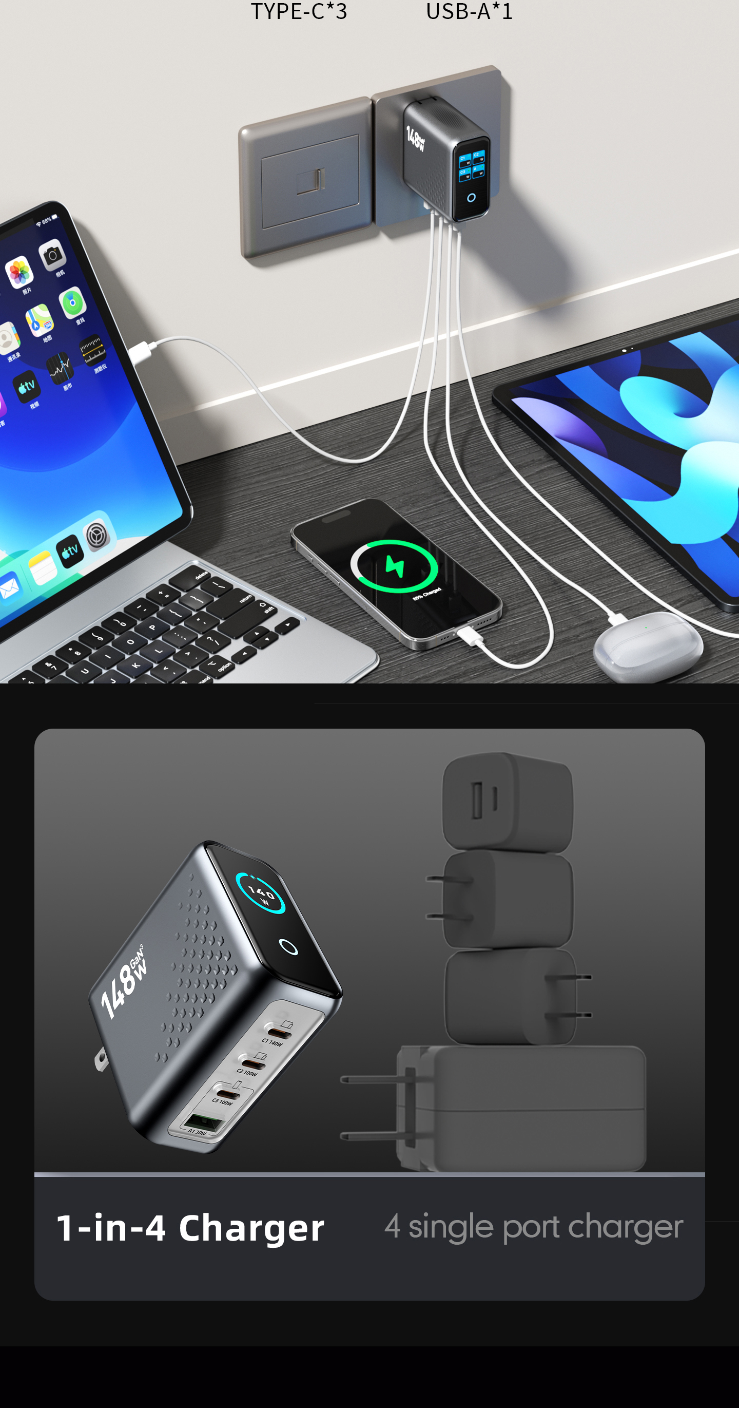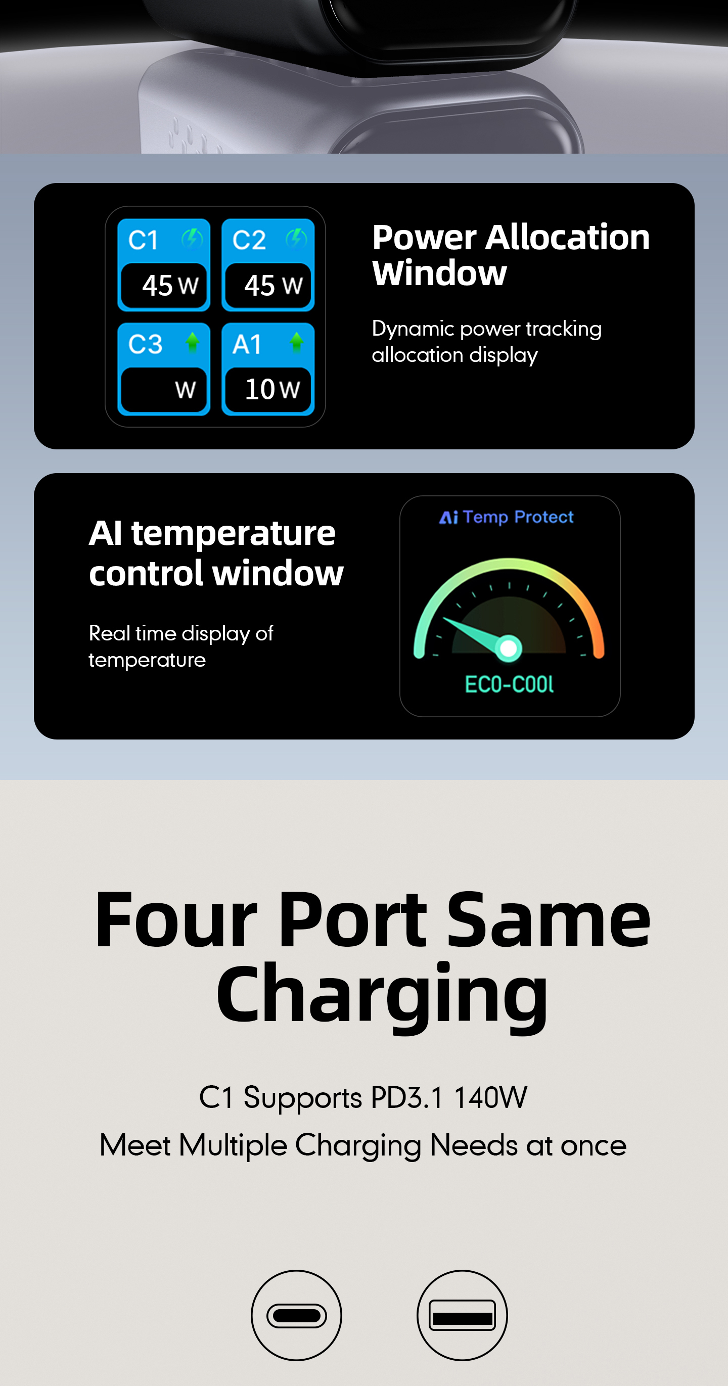 OBZHZ-WC680 PowerView Ai 2.0 | 140W Ultra 3C1A PD3.1 | GaN Fast Charger -
