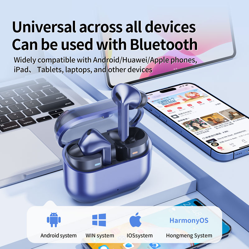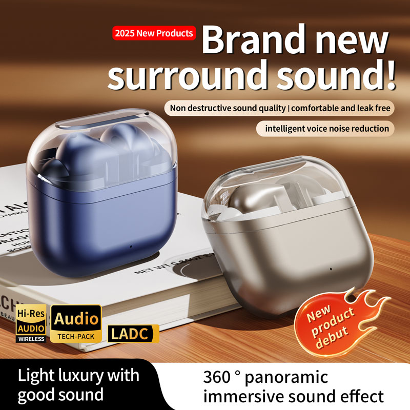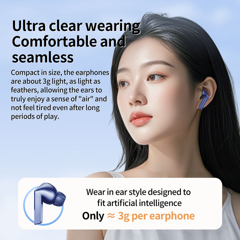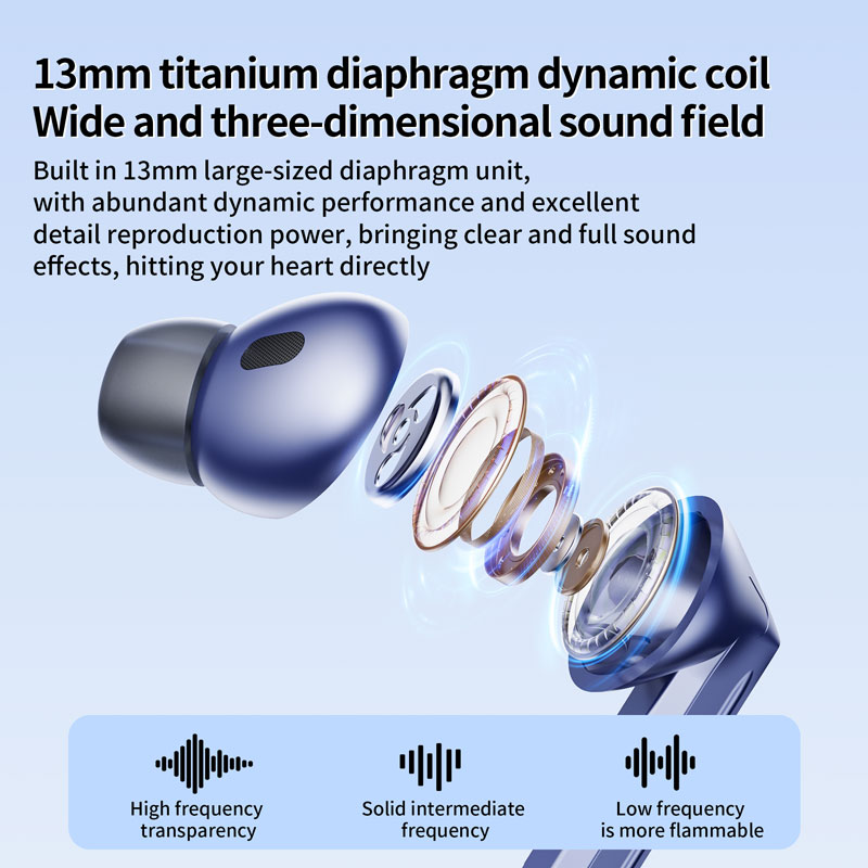 | Bluetooth Chip: AB5656C V5.4 Battery Capacity: Earbuds - 25 mAh, Charging Case - 300 mAh Playtime: 4h (at 60% volume) Charging Time: Approximately 1h for earbuds and 2h for the charging case Speaker Size: 13mm Number of Microphones: 2 Silicon MIC (LR) Waterproof Rating: IPX4 (LR) Charging Interface: Type-C Hall Switch: Yes Processes: Charging case, left and right (LR) earphones,Vacuum electroplating with a matte texture Colors: Deep blue, titanium gold |