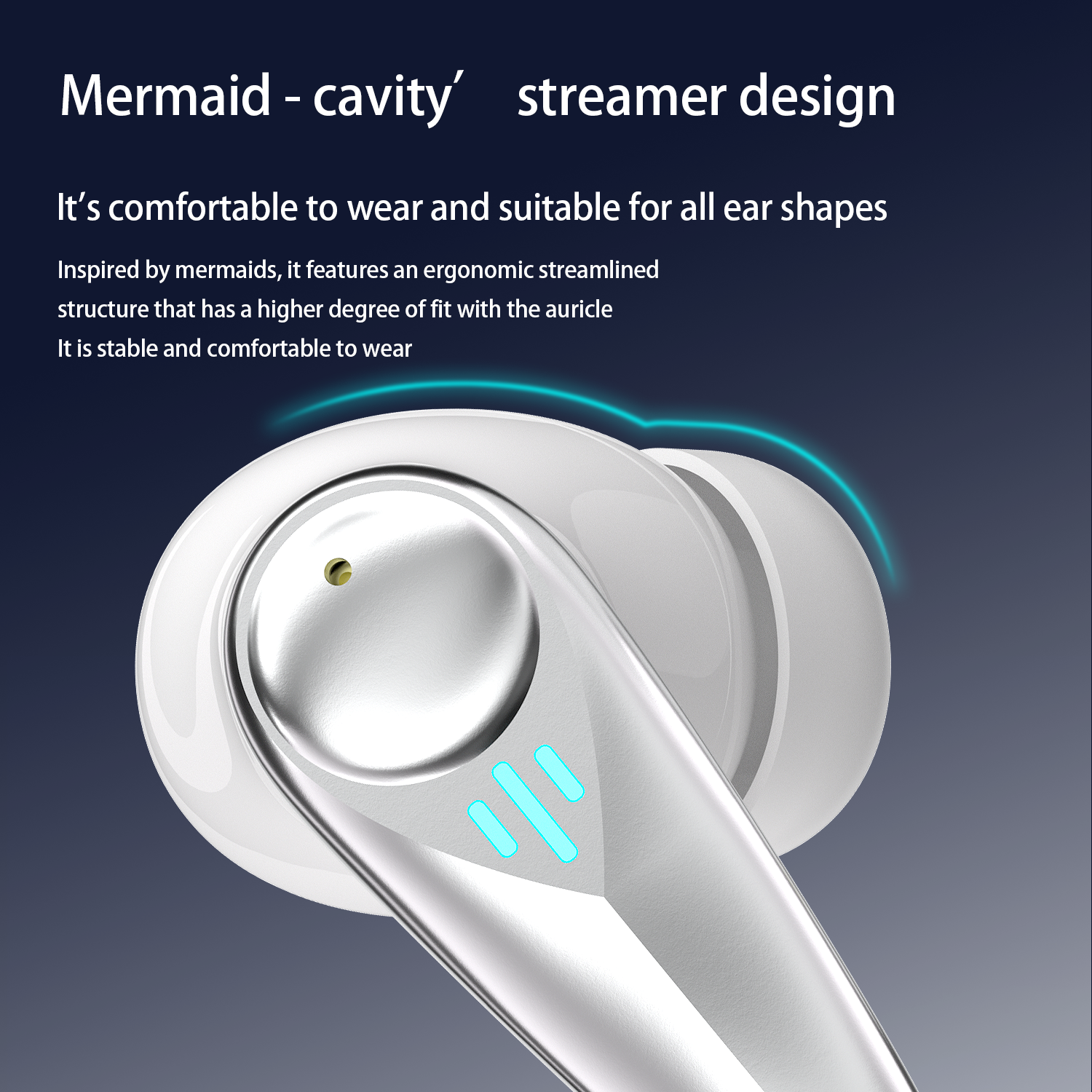 | Bluetooth Chip: JL7003D8 , V5.4 + 2.4G Dongle Battery Capacity: Earbuds - 40 mAh, Charging Case - 500 mAh Playtime: 7-8 h (at 60% volume) Charging Time: Approximately 1.5h for earbuds and 2h for the charging case Speaker Size: 13 mm Number of Microphones: 4 Silicon MIC (LR) Other Functions: Wireless gaming and esports headset with 2.4GHz Dongle flash connection, ultra-low latency of 0.03S and a dual-interface Type-C transmitter Battery display: LED digital display Call Noise Cancellation: 2 MIC ENC Active Noise Cancellation: ANC-FF Waterproof Rating: IPX4 (LR) Charging Interface: Type-C Craftsmanship: Charging case, left and right (LR) earphones, matte metallic paint process Color: Blackish gray, silvery white | Product Certification:CE ROHS,conform to:FCC |