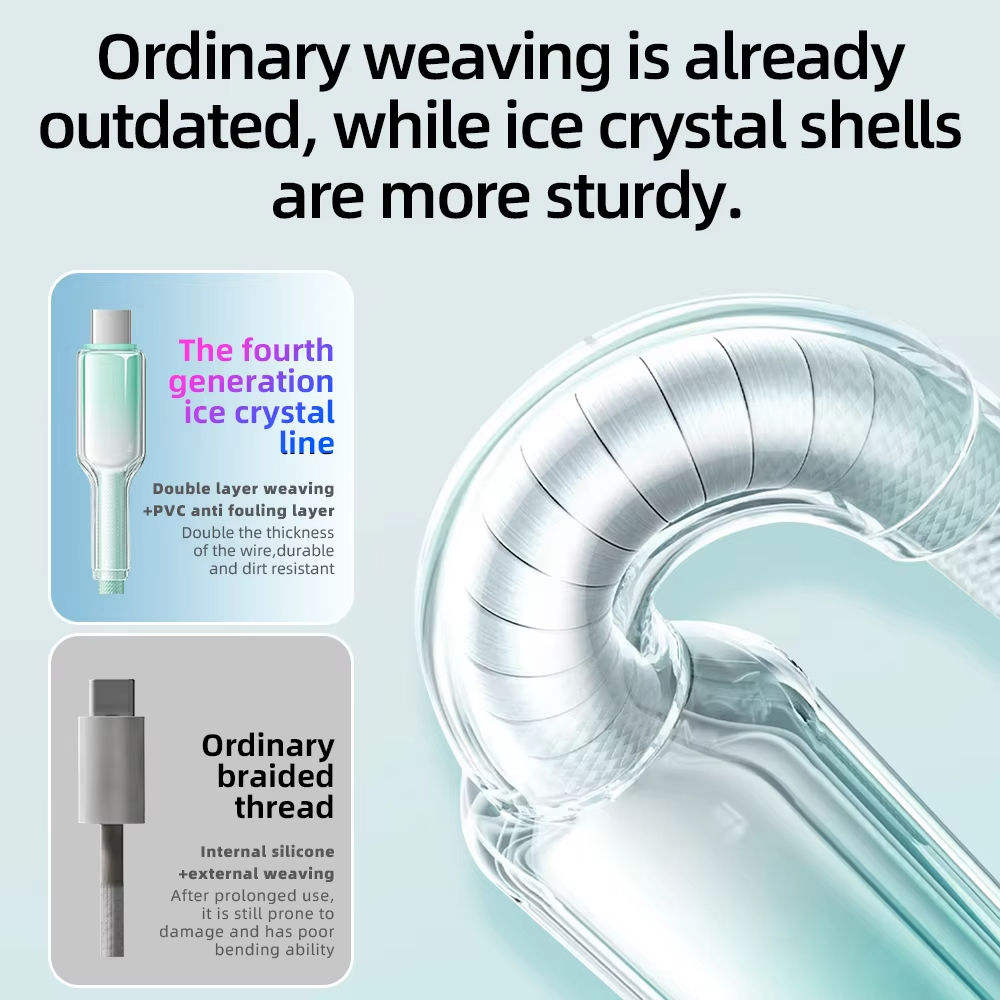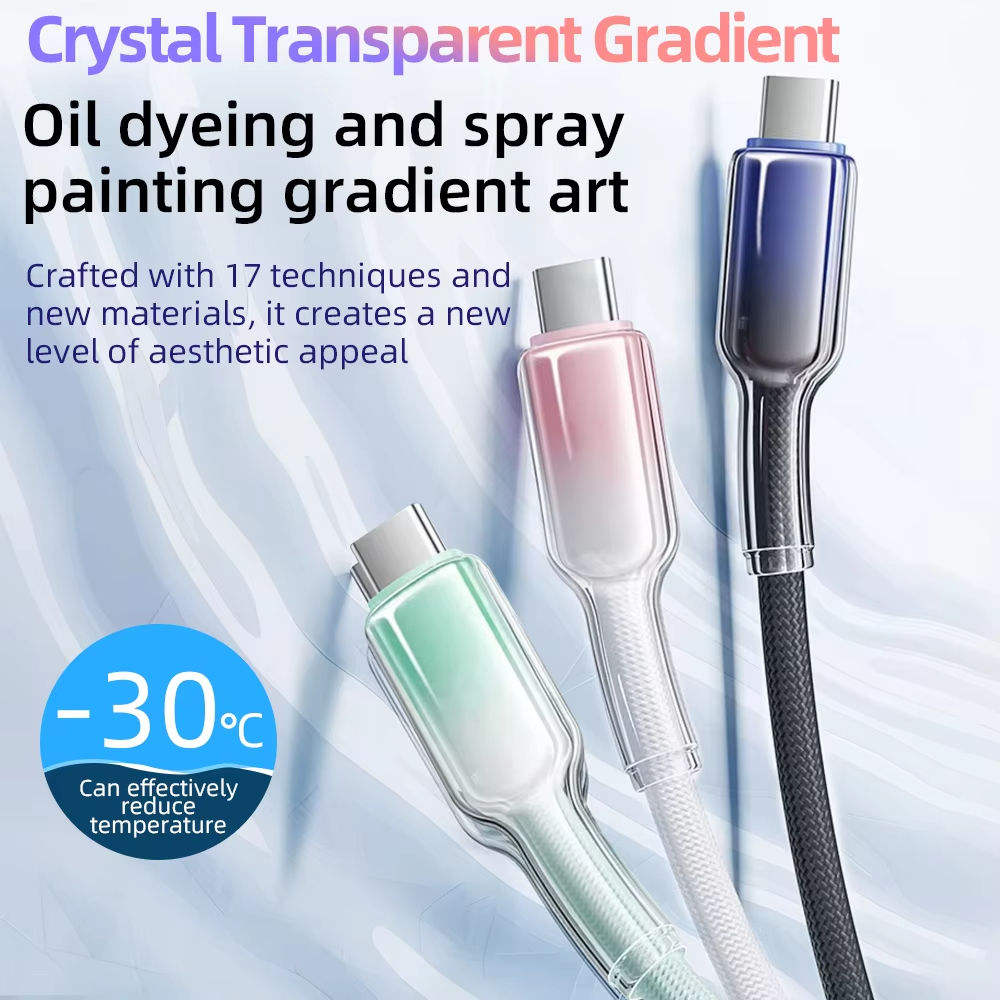 Ice Crystal series, transparent + gradient colors, 48-strand nylon braided charging cable
