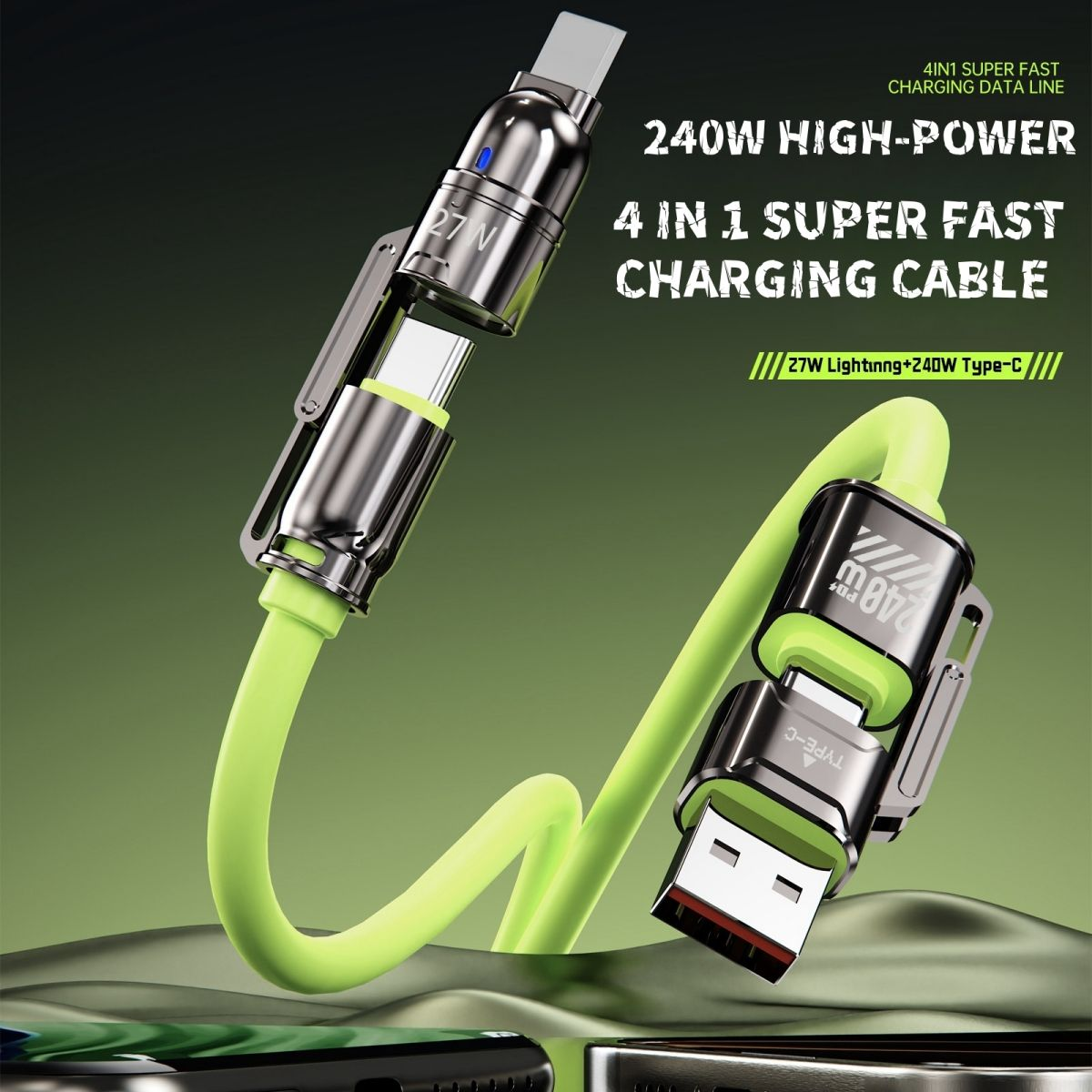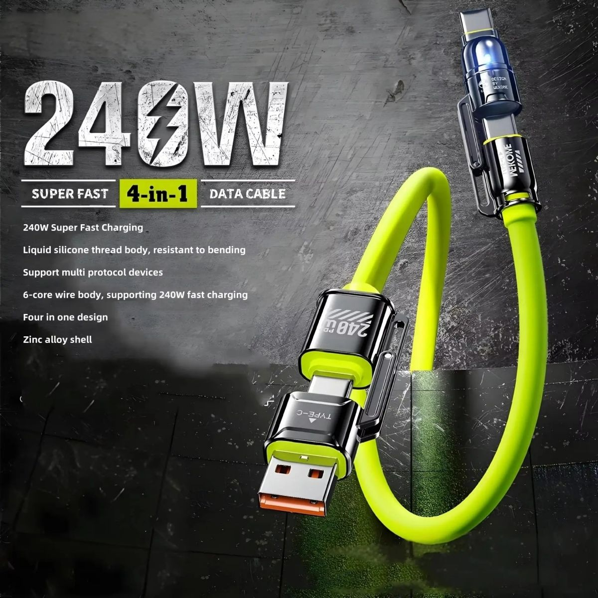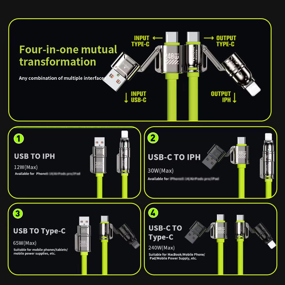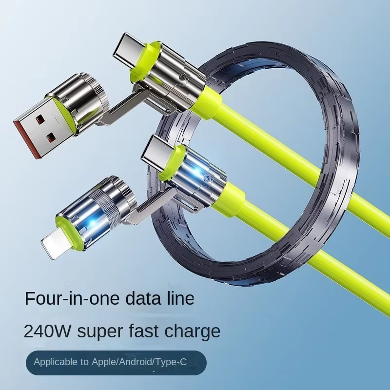 4 in 1 USB Zinc Alloy Edition - Fast Charging Cable Metal housing with chrome-plated retro craftsmanship, featuring heavy metallic texture and premium design style. 5.5mm thickened cable for enhanced durability and sturdiness. Constructed with new soft material, lightweight, flexible and comfortable, no rigidity. One cable universally compatible with various USB interface devices. Easily adapts to different charging ports as needed, reducing the number of redundant charging cables. | |